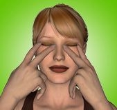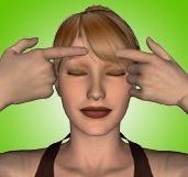 Vložte ukazováček a prostředníček obou ruk pevně do rohů očí. Pak zmáčkněte víčka pevně k sobě. Počítejte do 10. Pomalu uvolněte a relaxujte. Toto cvičení je na víčka a snižuje otoky.